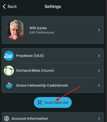 To join a group, you will need to get a QR code from your organization or from a group leader at your organization. Once you have that, you can scan it in PrayMore.