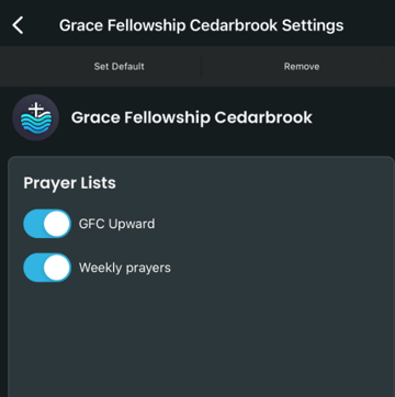 After you scan the code, you will see all of the lists that you are subscribed to for your church/organization. On this screen you can choose the individual lists to which you would like to subscribe.