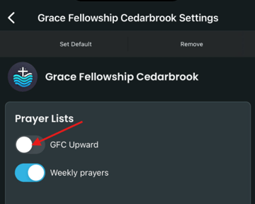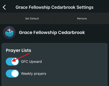 - You are still a member of the selected group but you will not receive prayer requests from nor be able to submit prayer requests to this group. Simply select the back arrow