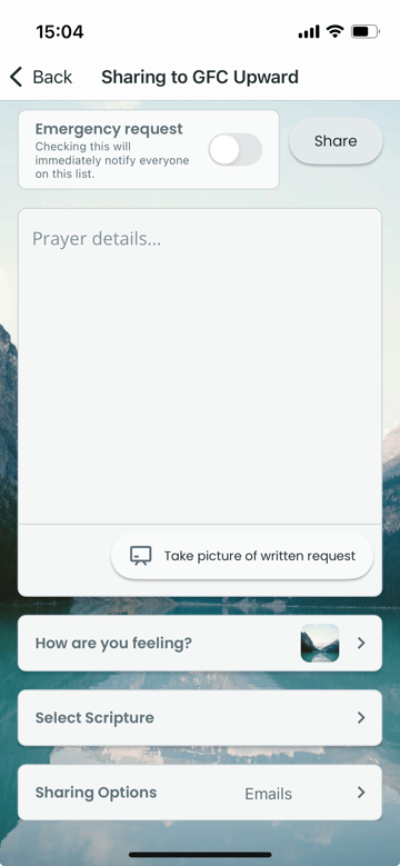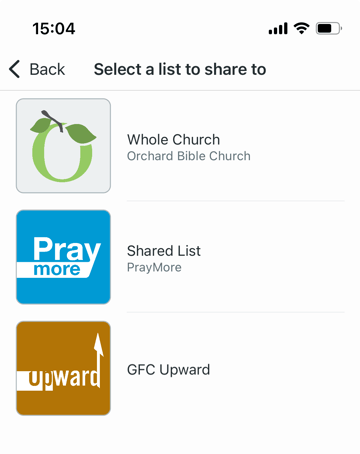 If you are a member of more than one list, you will be able to select which list and with whom you would like to share your prayer.