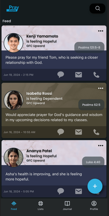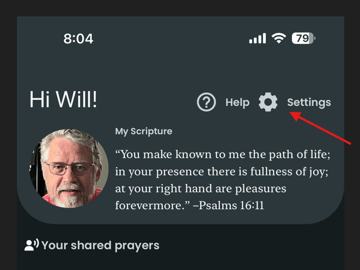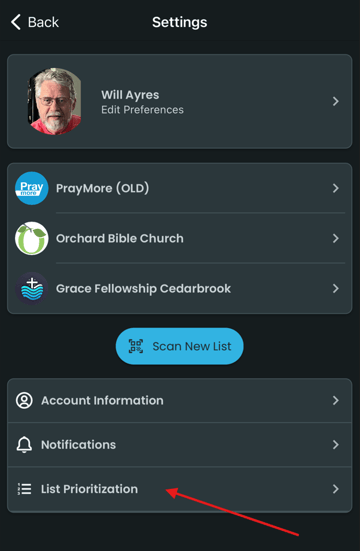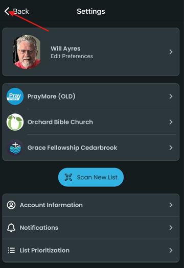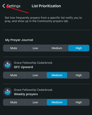 To verify that your Prayer List is now active, tap on the back arrow in the upper left from the List Prioritization screen
